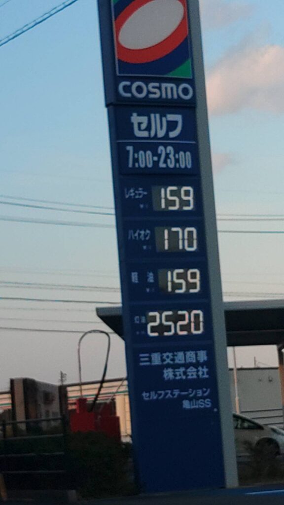 - ガソリンと軽油が同じ値段・・・・