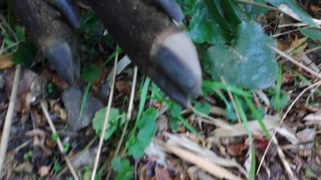 昨日のイノシシはシマ爪でこのイノシシは養豚場のブタとの交配で生まれた者です。
