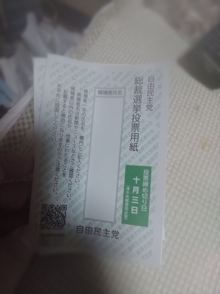それで、私の所にも、投票用紙がきました。